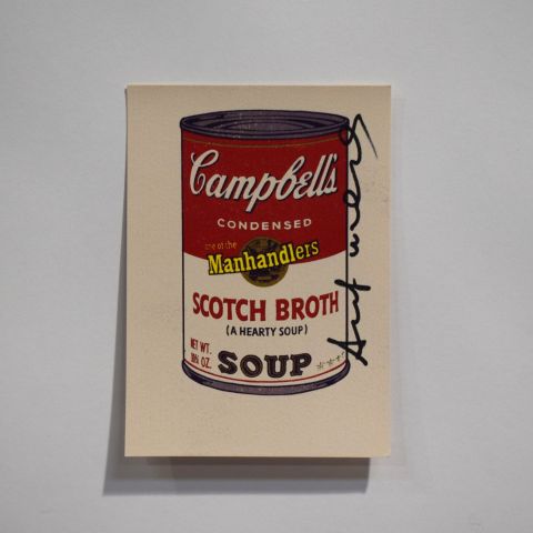Campbell's postcard signed by A. Warhol, 14 x 9 cm, collector's item