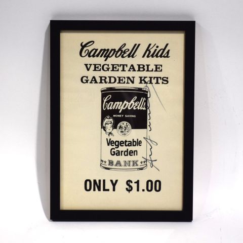 A. Warhol (after), Campbell Kids Vegetable Garden Kits, Offset print, black marker signature on plate, AW stamp on reverse, 28.5 x 19.5 cm on view, framed 32 x 23 cm, without certificate