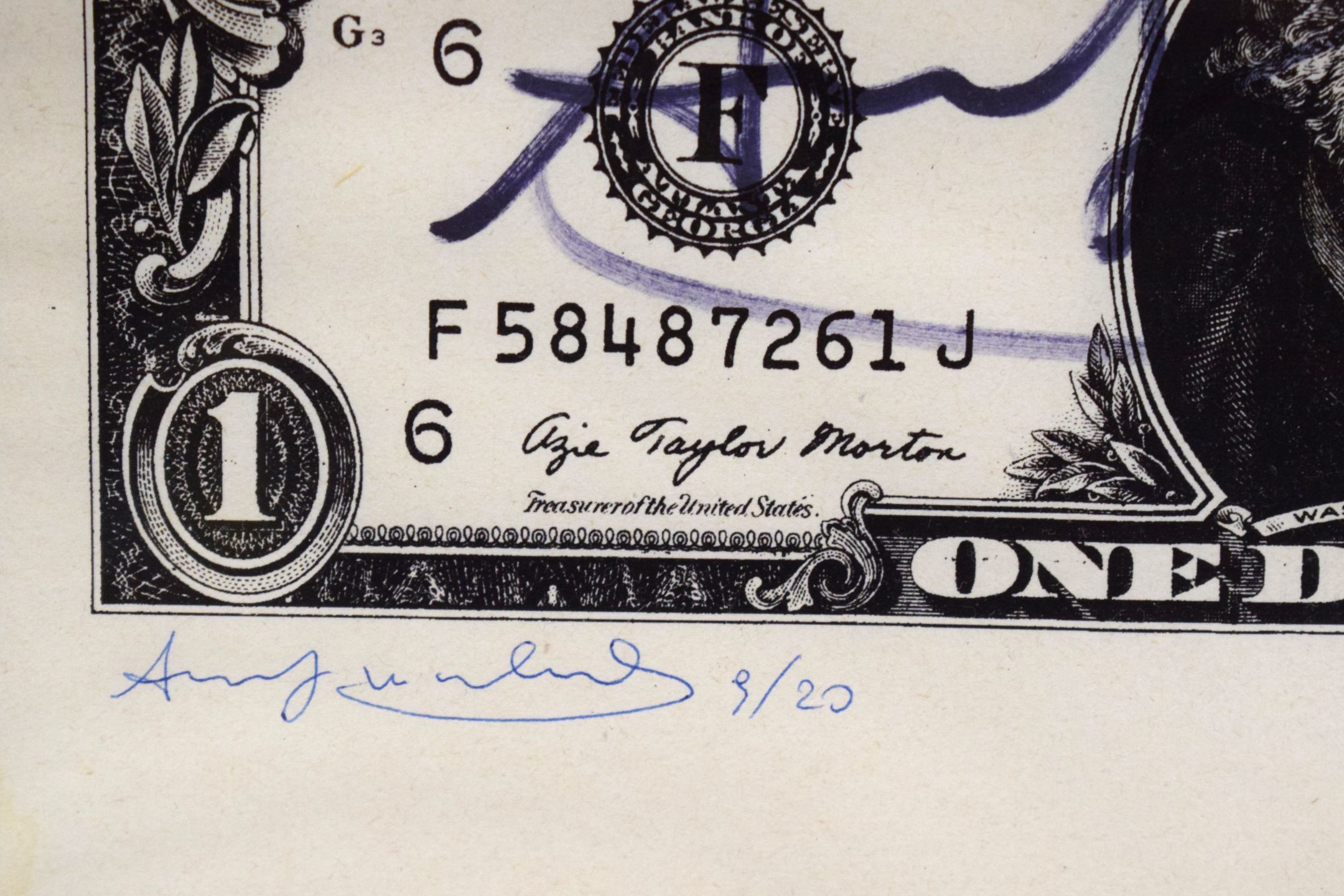 Signed offset print by Andy Warhol: One Dollar, original framed artwork
