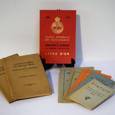 (In Memoriam Arsène Lefèvre, Director of the Compagie Grand-Ducale d'Electricité du Luxembourg, 1900-1958, 1958. 2. Association des Voyageurs et Employés du Commerce et de l'Industrie Luxembourg : Livre d'Or 1889-1939, 1939. 3. Tony Pemmers: Le Contrat de Travail des Employés dans le Grand-Duché de Luxembourg, 1952. 4. Société de Prévoyance Mutuelle du Personnel de la Caisse d'Epargne de l'Etat Luxembourg: Statuts, 1958. 5. Société de Prévoyance Mutuelle du Personnel de la Caisse d'Epargne de l'Etat Luxembourg: Statuts, 1965.