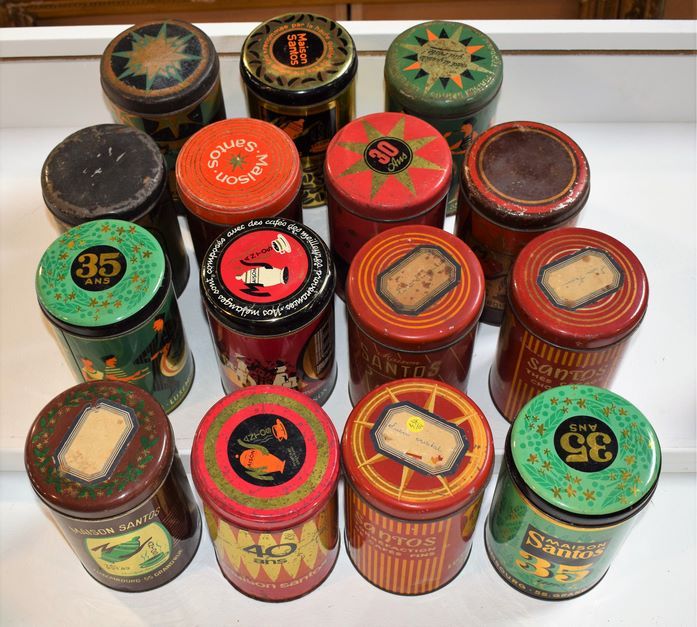 (Daily life) Set of 15 coffee cans of the house Santos of which the first of 1928, all different, used condition