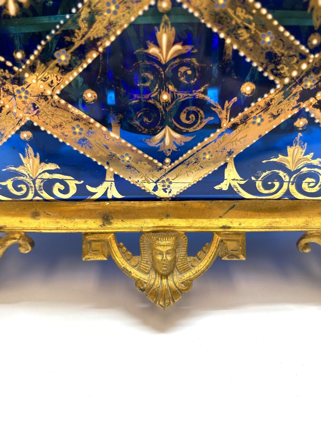 Gilded decoration, Egyptian mascaron and base sculpted with putti.