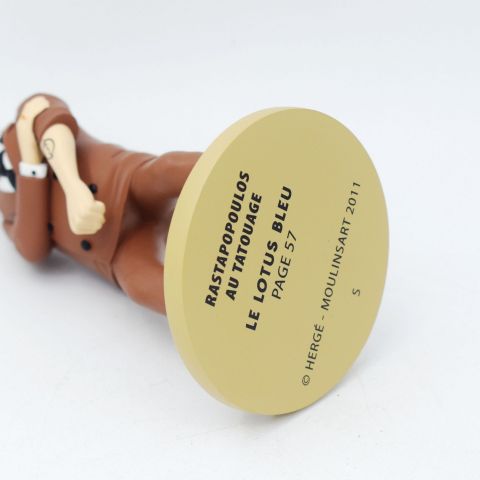 (TINTIN - COLLECTION), #9 , RASTAPOPOULOS au tatouage dans "Le lotus bleu", Page 57, Figurine en résine peinte à la main, La Collection Officielle : Figurines TINTIN & Livret, Edition Moulinsart 2011, 11,5 cm, bon état