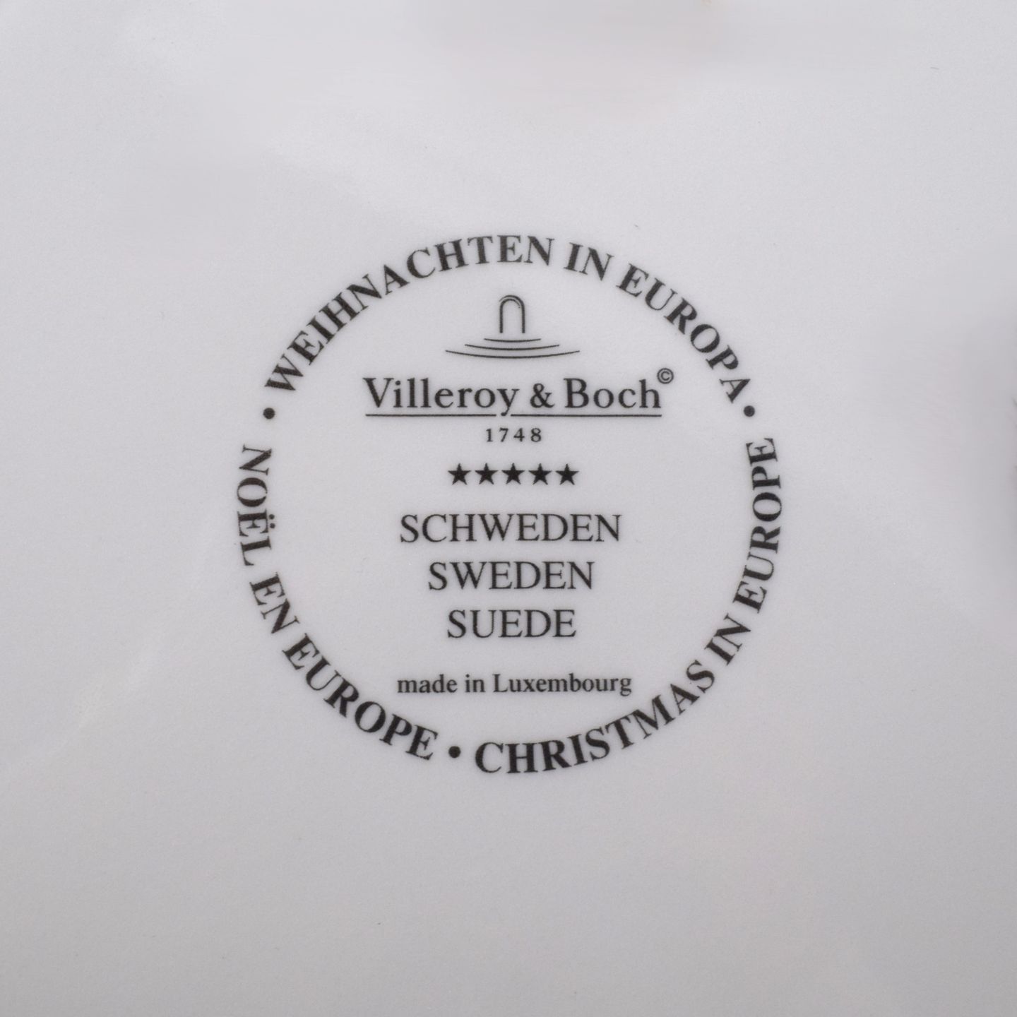VILLEROY & BOCH. Grande assiette creuse en faïence Villeroy & Boch Luxembourg de la ligne Noël en Europe, ici la Suède. Dans sa boîte. Diamètre 27 cm