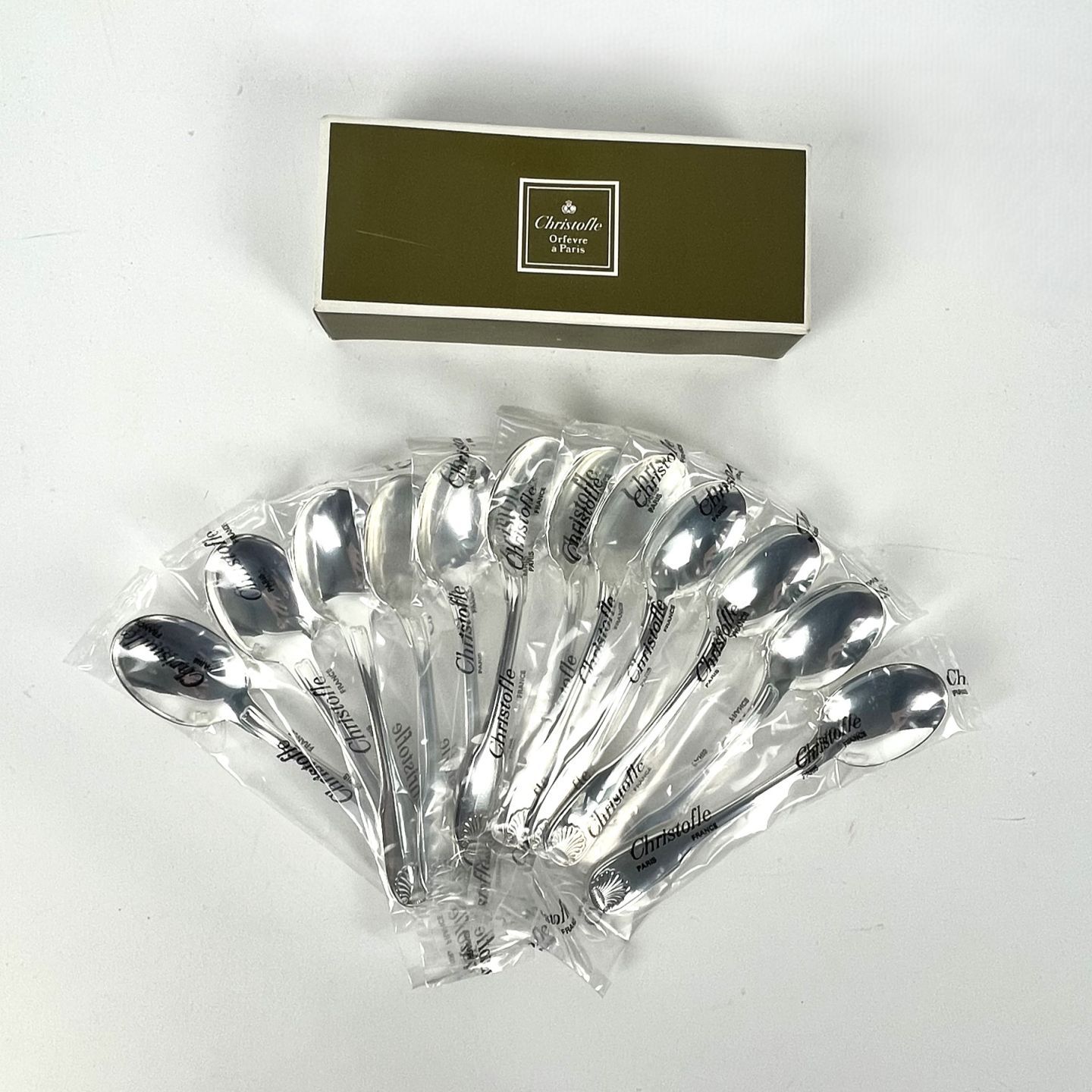 CHRISTOFLE. Modèle VENDÔME. 12 cuillères à glace. Etat neuf, boite scellée.
