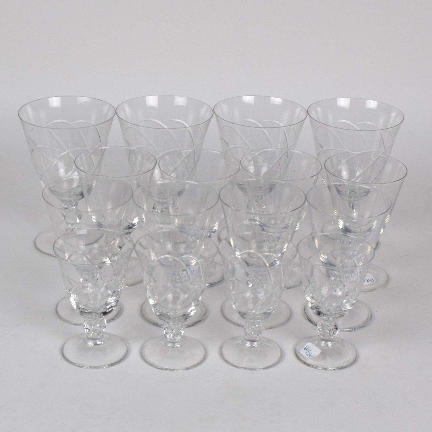 DAUM France. Modèle Orval. Suite de 7 verres à eau, 8 verres à vin blanc, et 5 verres à digestif. Signées à l'aiguille.