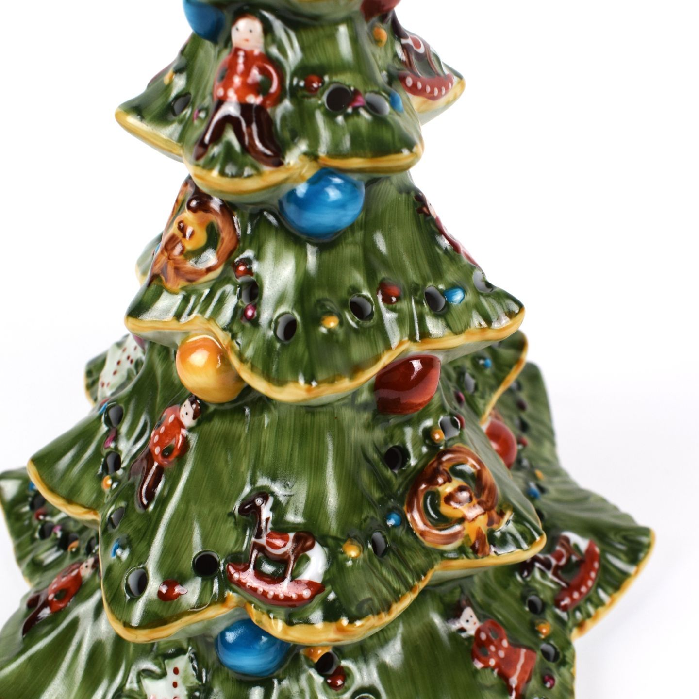 VILLEROY & BOCH. Sapin de Noël faisant office de photophore. Porcelaine polychrome. Hauteur : 23 cm. Avec sa boite. (usagée).