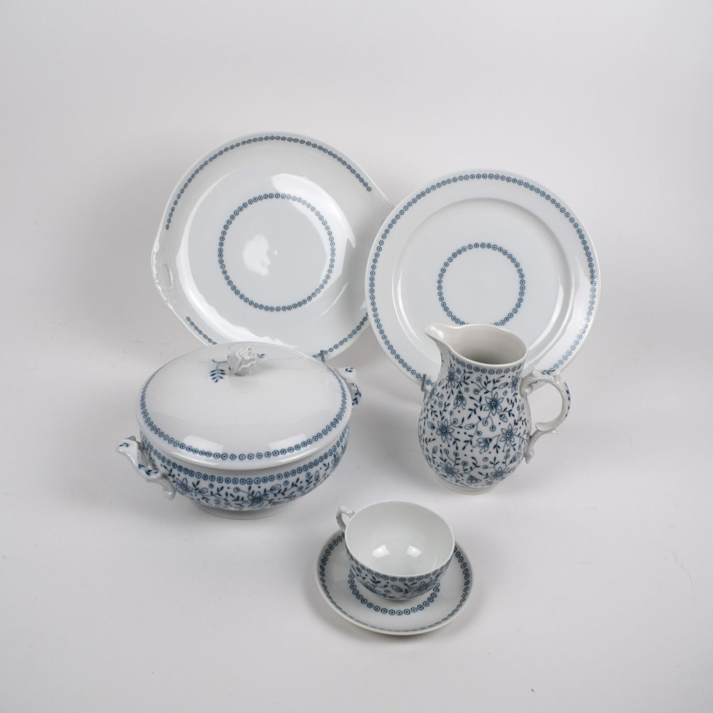 FÜRSTENBERG. Service en porcelaine bleue et blanche, comprenant 125 pièces :