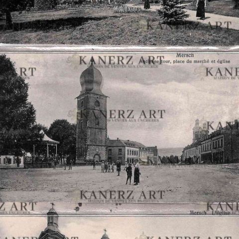 Réunion de 3 cartes postales de THEISEN-BINSFELD : 1) L'église, ca 1910, 2) Ancienne Tour, place du marché et église, 1918, 3) Kloster, 1916