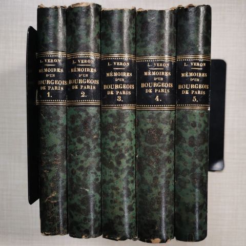 3 volumes In-8 plein veau moucheté, dos lisse à 2 pièces de maroquin vert portant auteur, titre et tomaison.