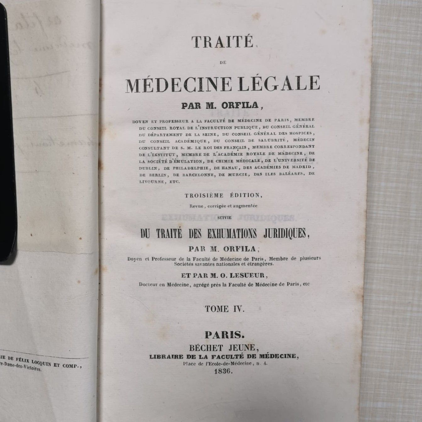 Paris, Béchet Jeune Librairie de la Faculté de médecine, 1836.