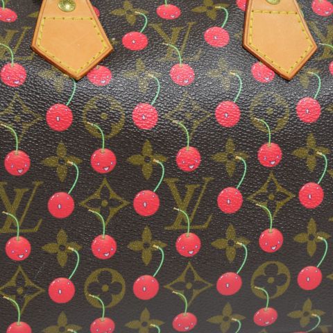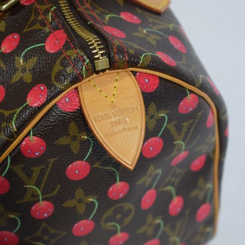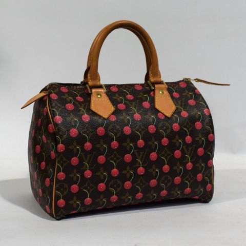 Sac Louis Vuitton, modèle Speedy 25 collection Cerises - Cherry, toile monogrammée avec imprimé Cerises, fermeture zippée, très bon état, 25 x 20 x 15 cm