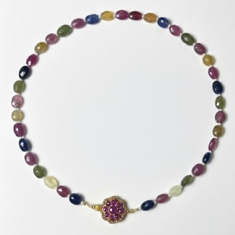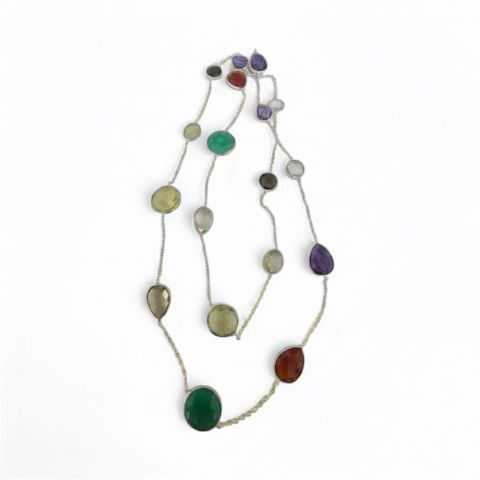 COLLIER en argent 925/1000 serti de pierres semi-précieuses (Améthystes, quartz jaune etc,). Poids : 28.9 g.