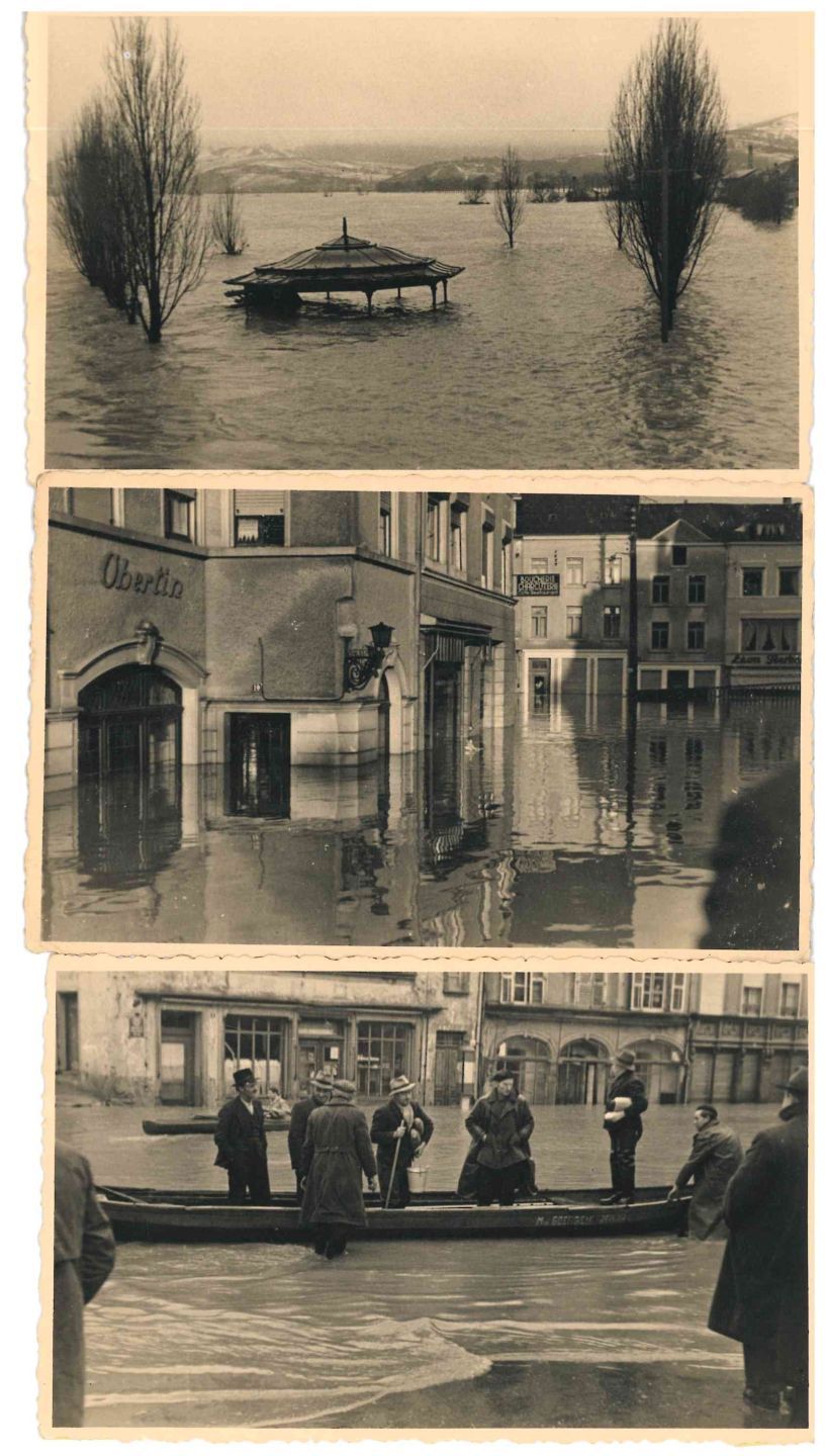 REMICH. Réunion de 8 cartes-photos de l'inondation du Siècle en 1947/1948 par le photographe de Remich Weber.