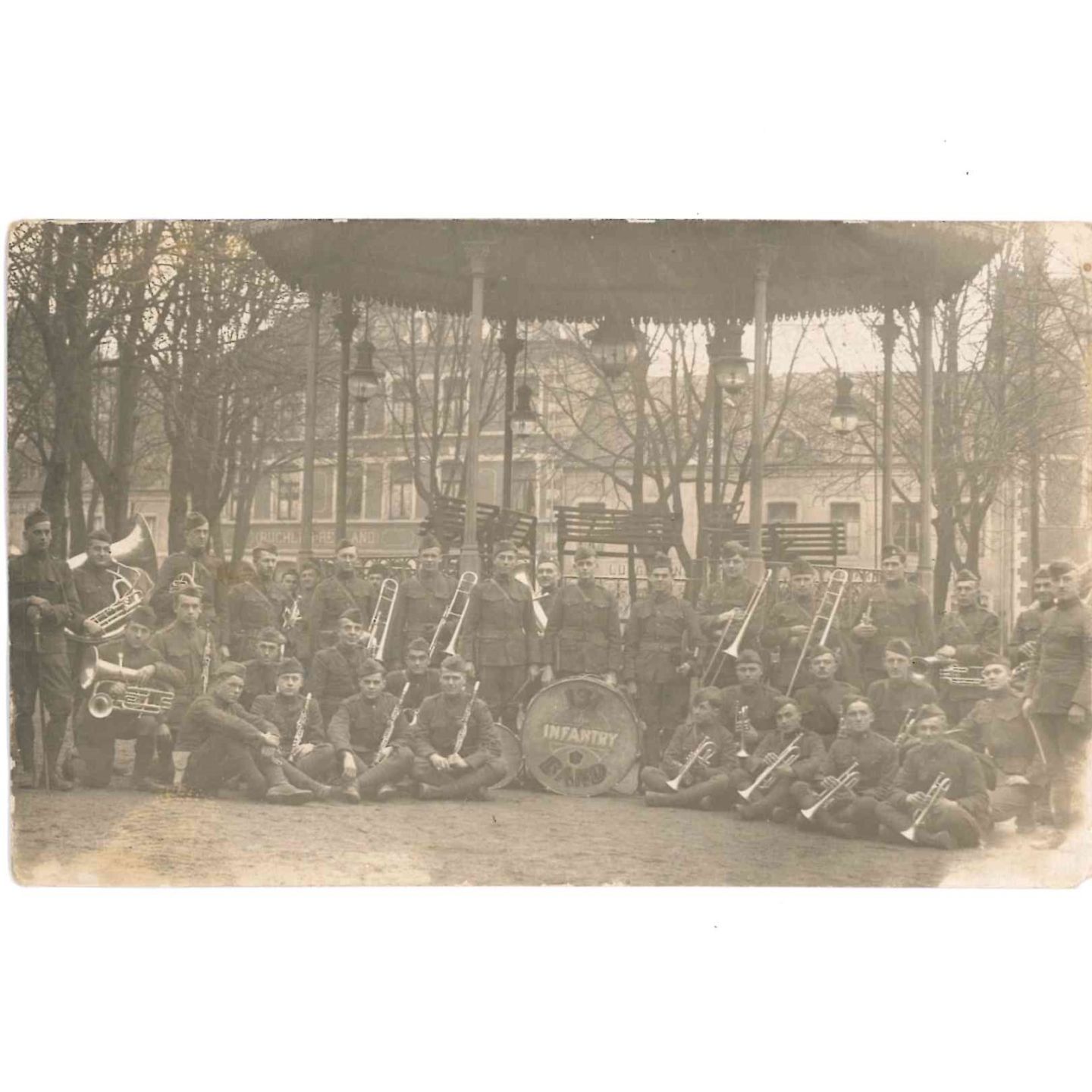 Carte-photo rare du 131e Infantry Band américain au Luxembourg, mai 1919