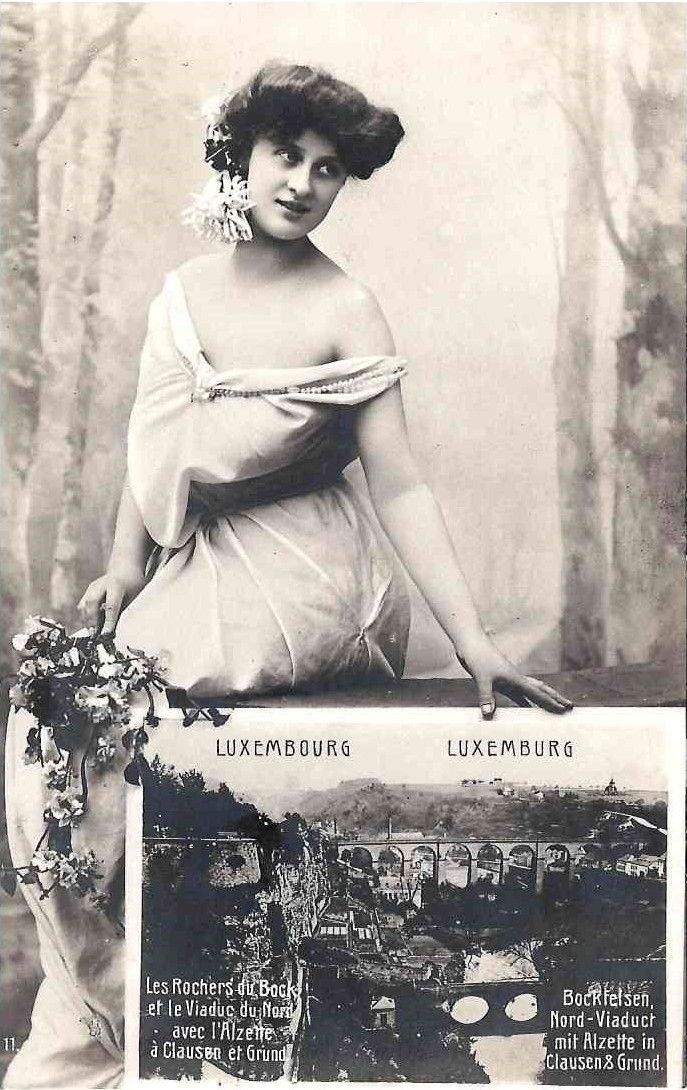 VDL. Carte photo fantaisie avec une jeune femme et une vignette de la ville, verlag Springer Strassburg, ca 1905