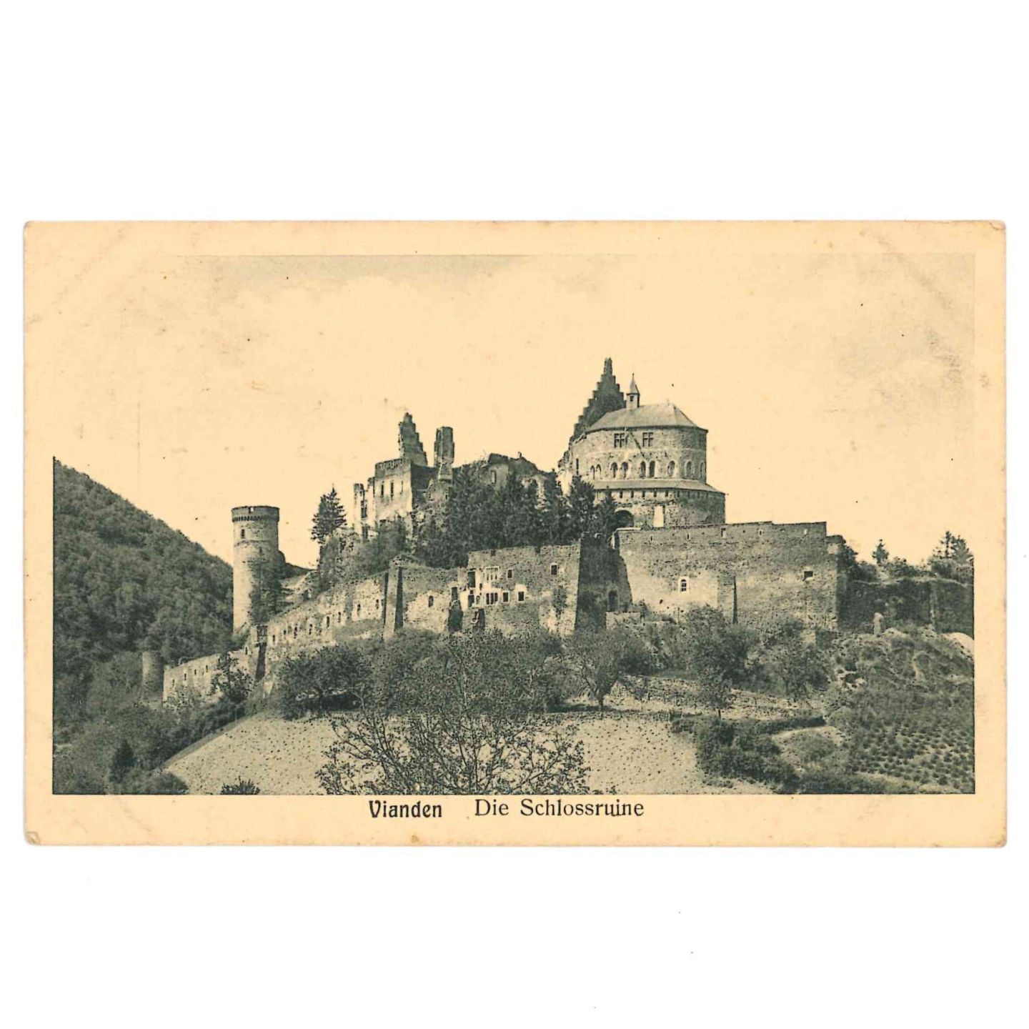 VIANDEN. Carte publiciraire Albert Hoffmann , ruine du château , vers 1910 , druck Huss