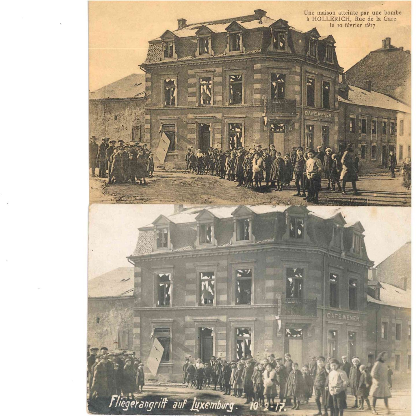 WAR I. 2 cartes de maisons bombardées à Hollerich le 10 février 1917
