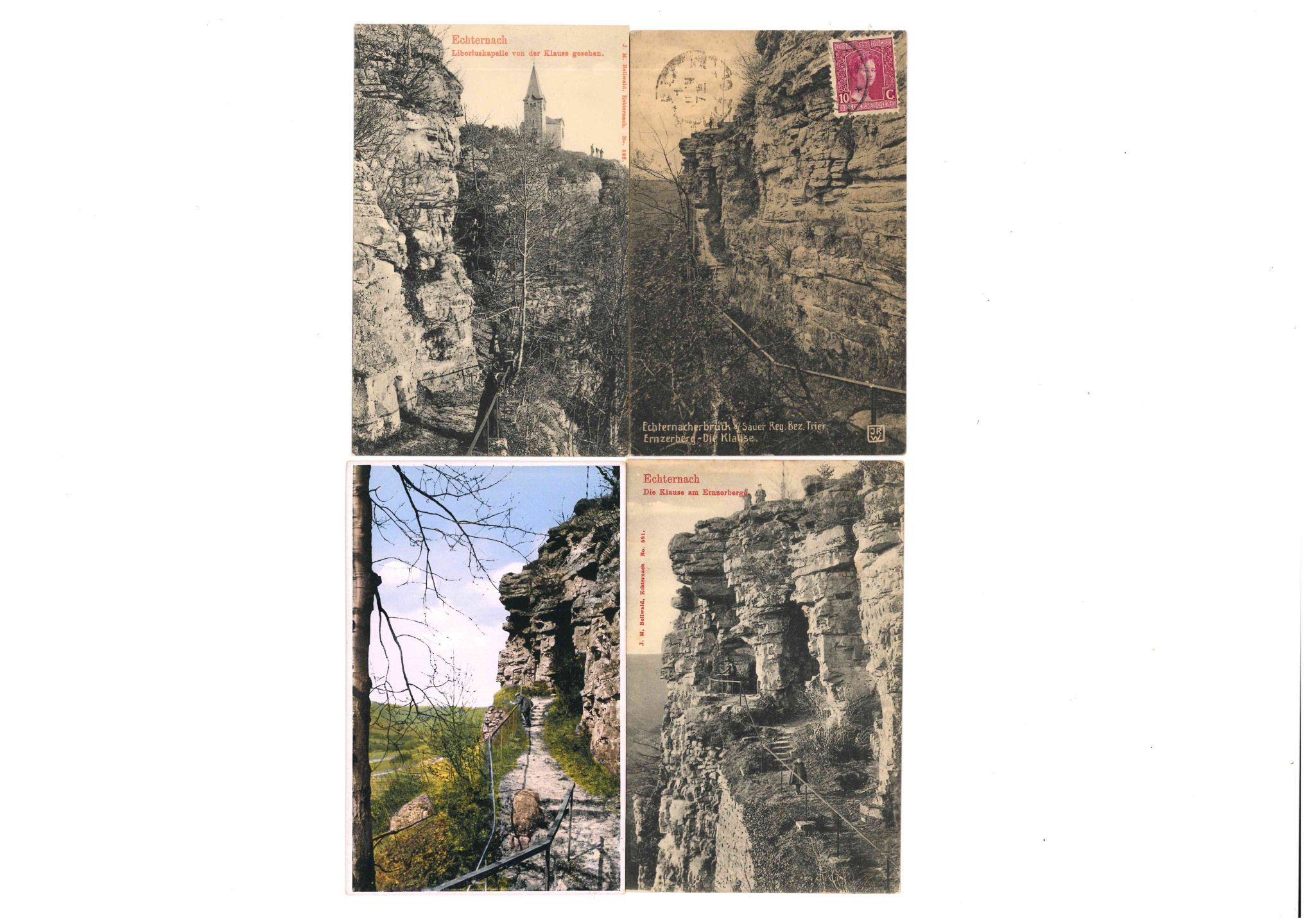 ECHTERNACH. Réunion de 18 cartes postales de vues des rochers et promenades aménagées des rochers au dessus de la ville, de 1900 aux années 20 : Bellwald & J R Waeger, Jos. Artois, Nels, Capus, Bernhoeft