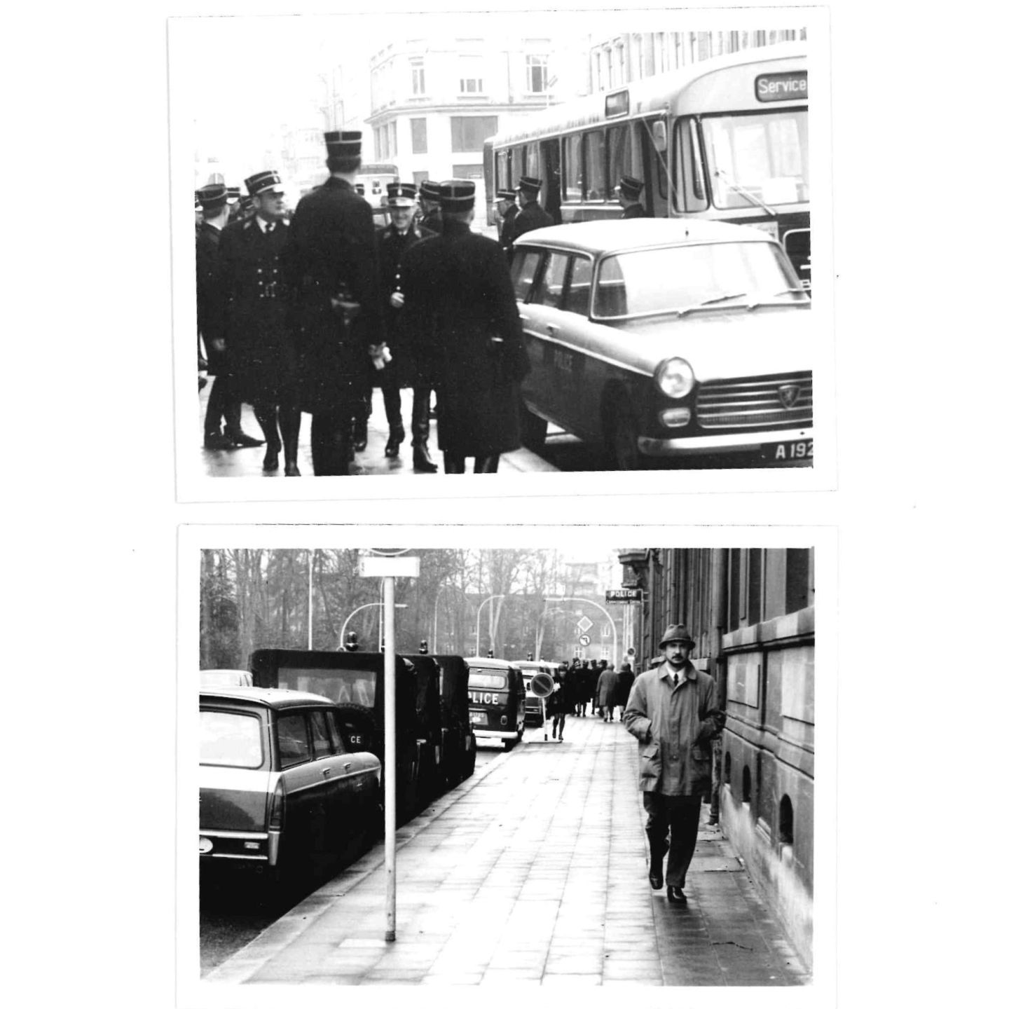 AUTO. Réunion de 36 photographies de policiers et de véhicules de police prises dans les années 60-70.