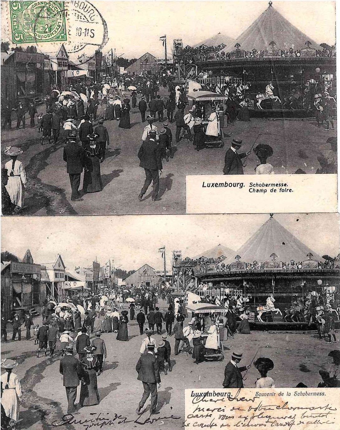 SCHOBERMESS. Réunion de 2 belles cartes postales de la Schobermess "Souvenir de la Schobermess", édition Grand Bazar Champagne, 1905