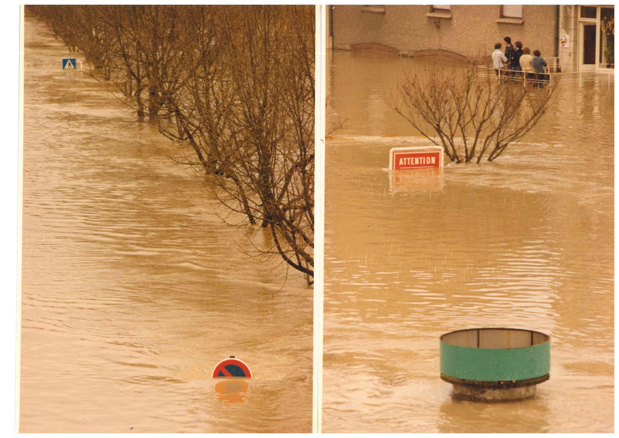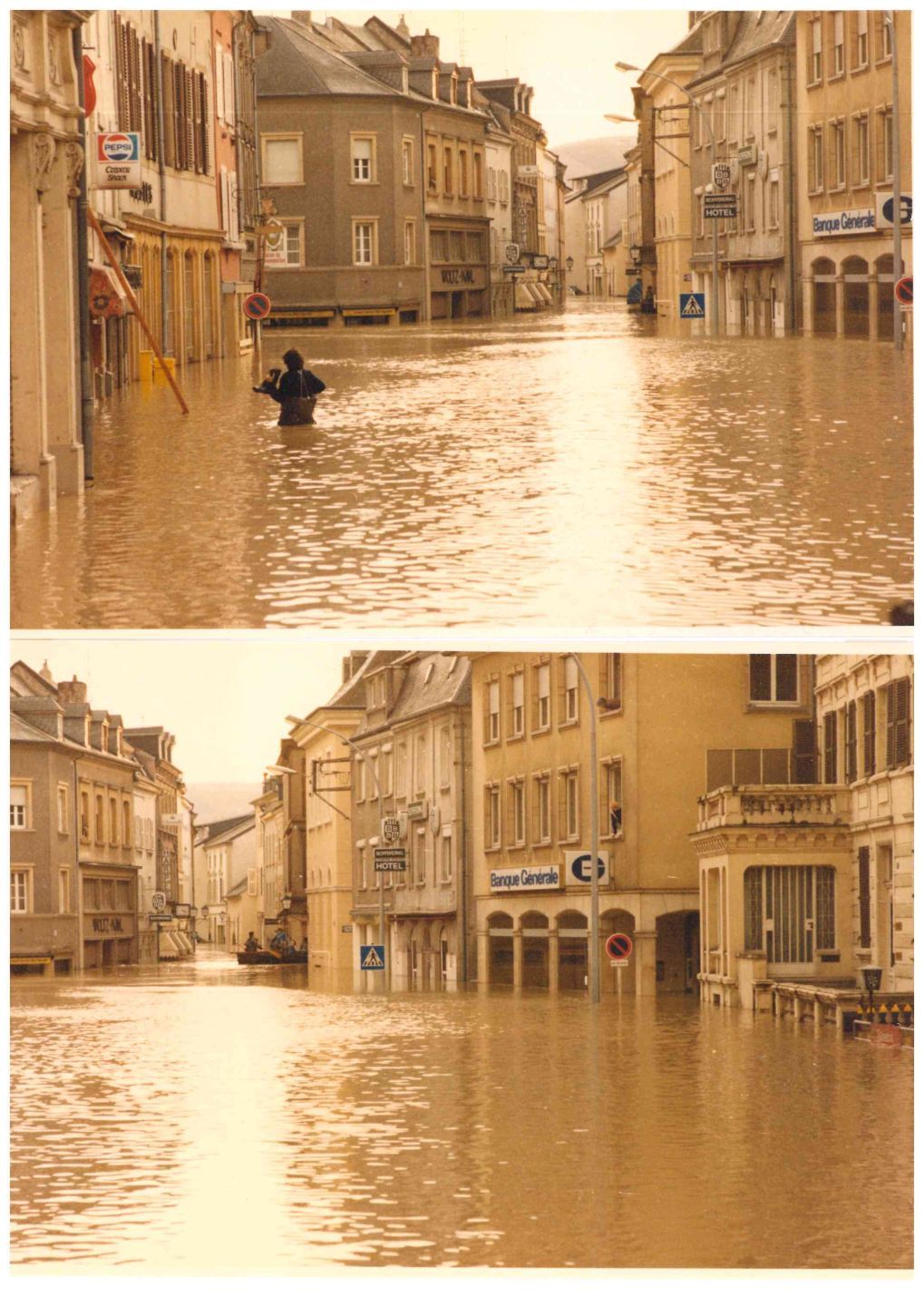 REMICH. Réunion de 8 grandes photographies privées de l'inondation de Remich en 1983. 12,5 x 18,5 cm