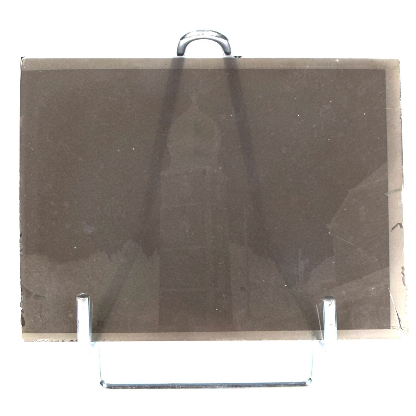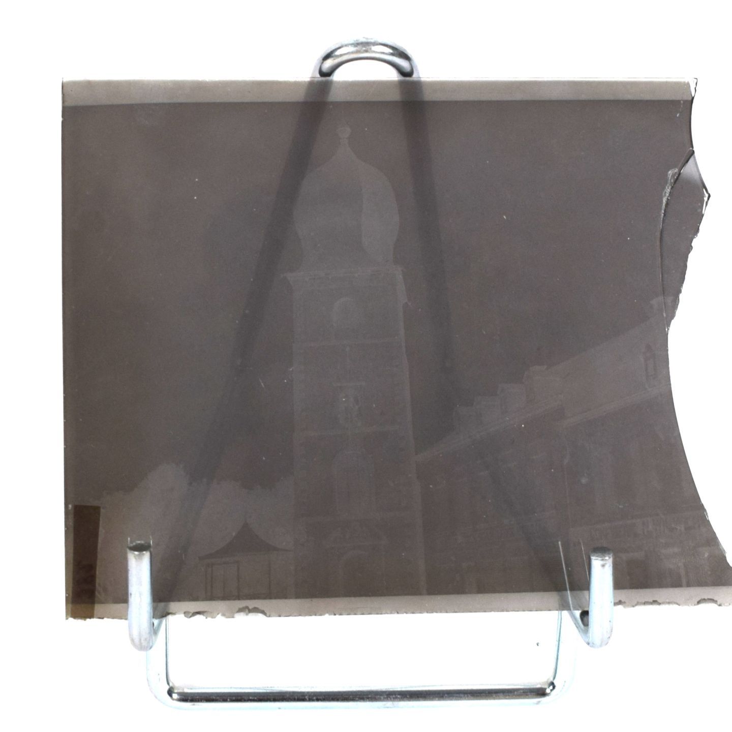 PLAQUES de VERRE (x2) de la Tour de la Place Saint-Michel) vers 1905-1910. Une bordure brisée. 9 x 12 cm