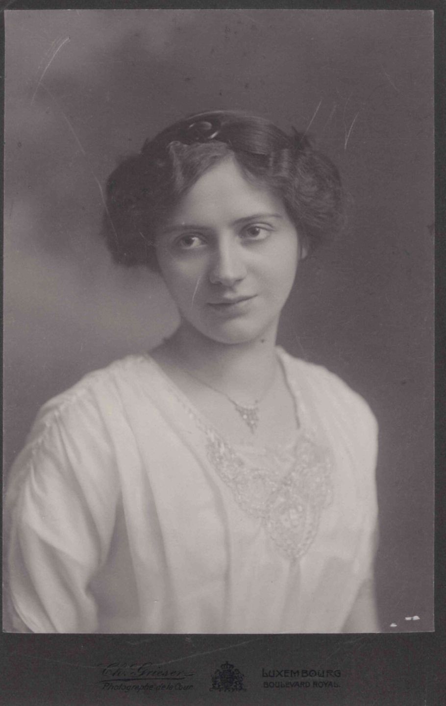 GRIESER. Photographie format carte de visite du portrait d'une jeune femme par le photographe Charles Grieser, ca 1900