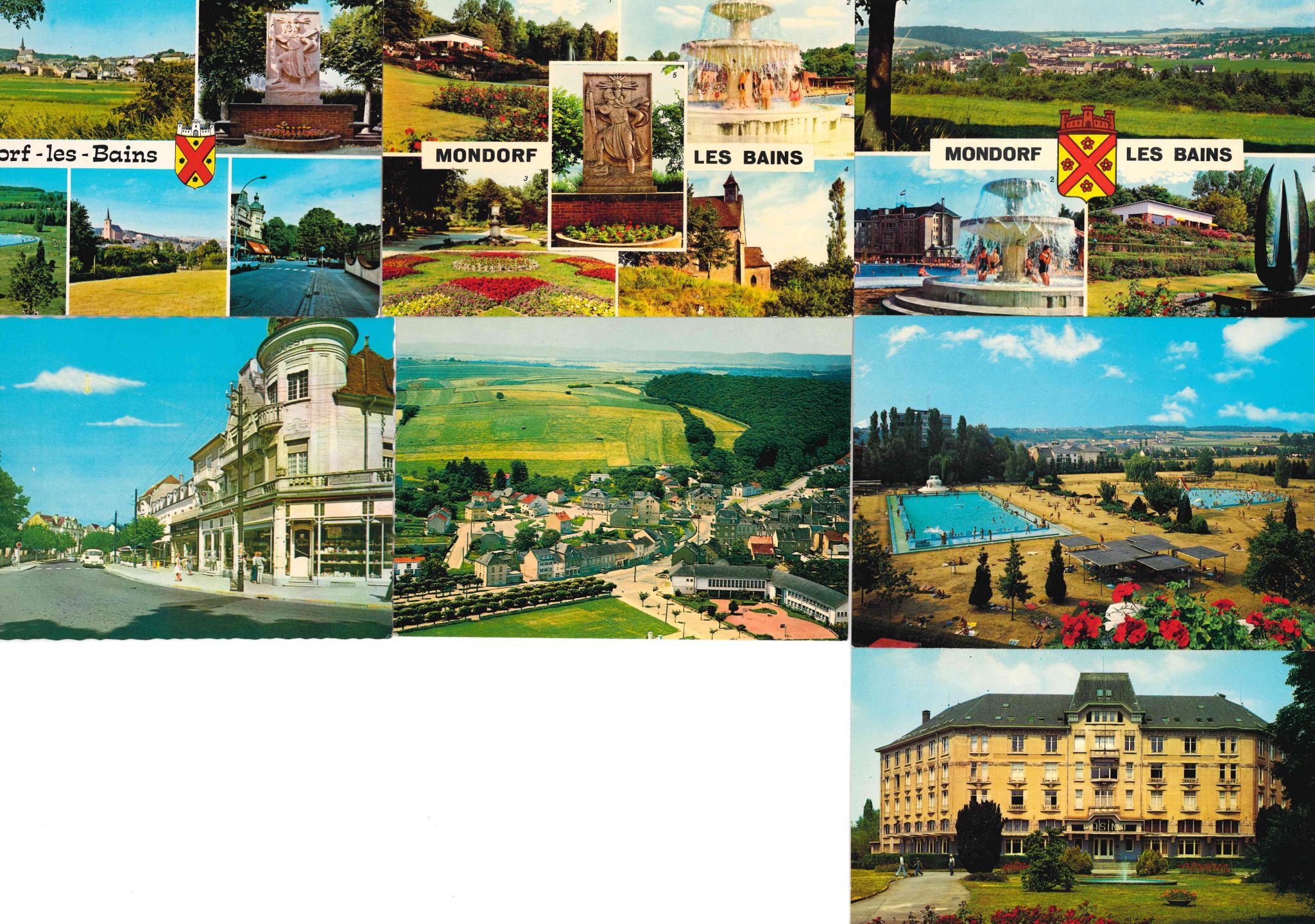 MONDORF. Réunion de 7 cartes postales semi-modernes dont l'ancien Hôtel Casino. Années 50/60/70