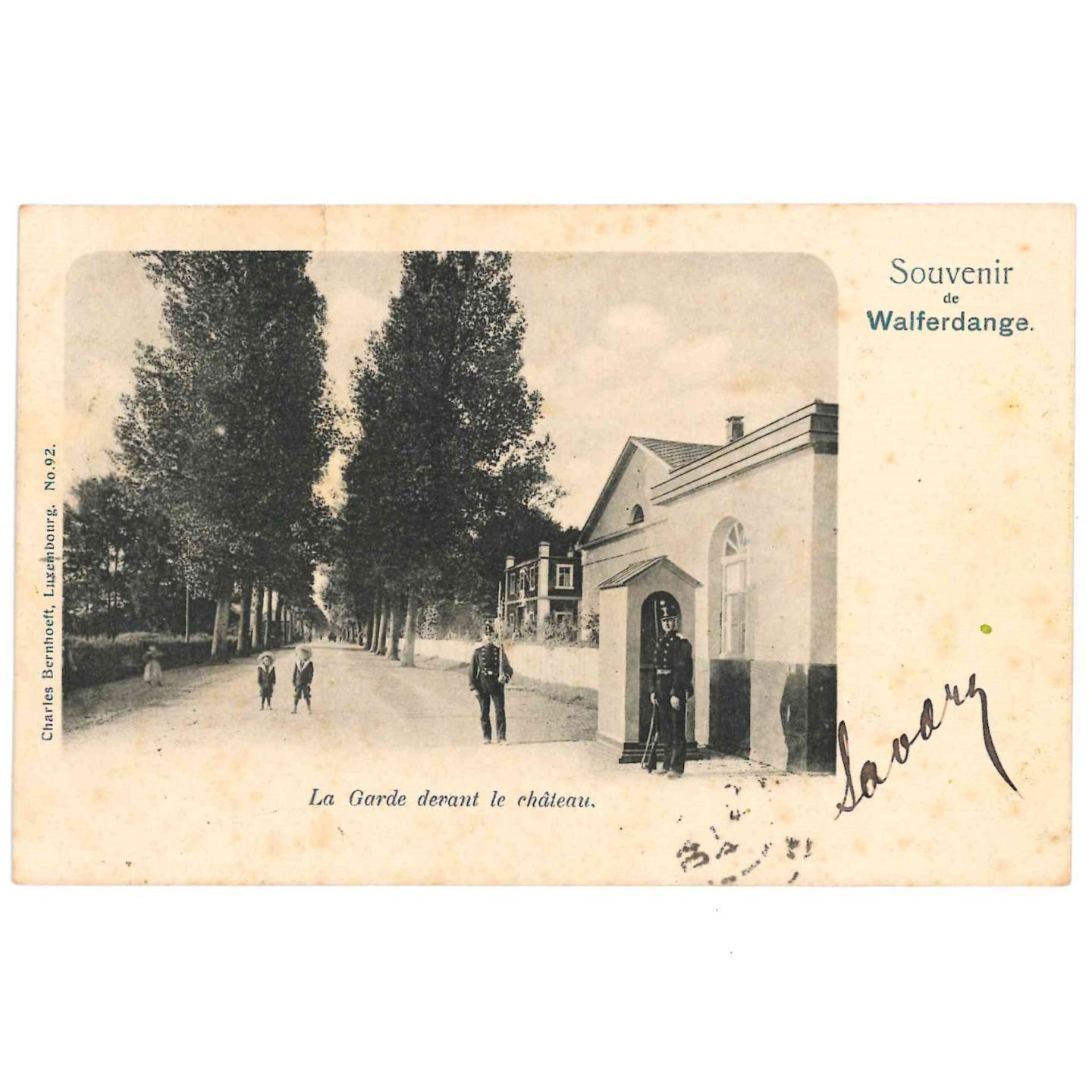 WALFERDANGE. Carte postale souvenir de Walferdange , La Garde devant le Château, 1903, Bernhoeft no 92