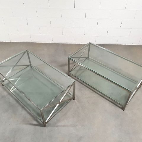 Paire de tables basses en acier chromé avec plateaux en verre, à rafraîchir