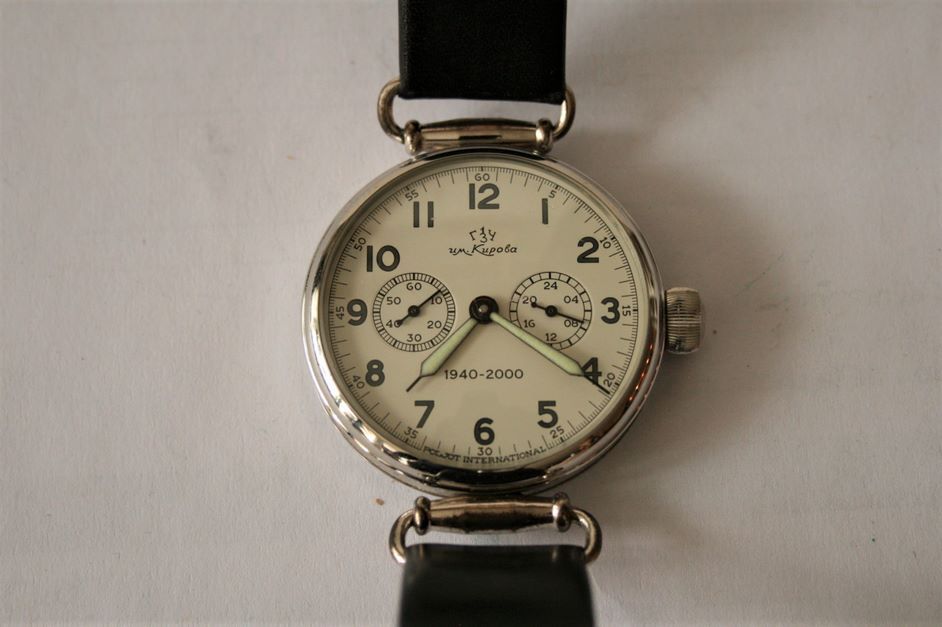 Montre russe de pilote en acier, POLJOT KUPOBA, série 1940-2000, cadran blanc, arrière squelette, bracelet cuir