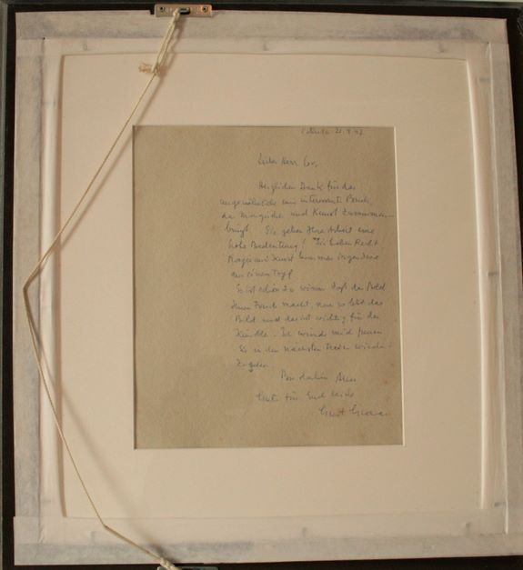 Gust GRAAS (né en 1924), peintre luxembourgeois, Gouache sans titre, signée en bas à droite et datée 97, long envoi mansuscrit au dos - Dimensions : 48,5 x 52,5 cm