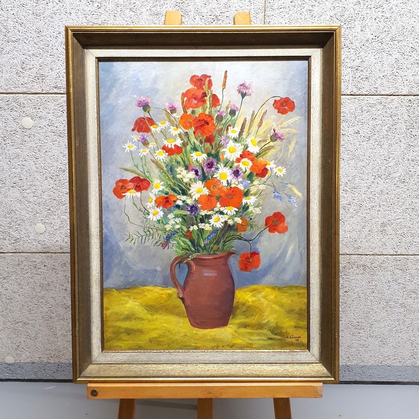 SÜNNEN Jos (1894-1969), Bouquet de fleurs de champs, Huile sur panneau signée en bas à droite et datée 67. 70 x 50 cm