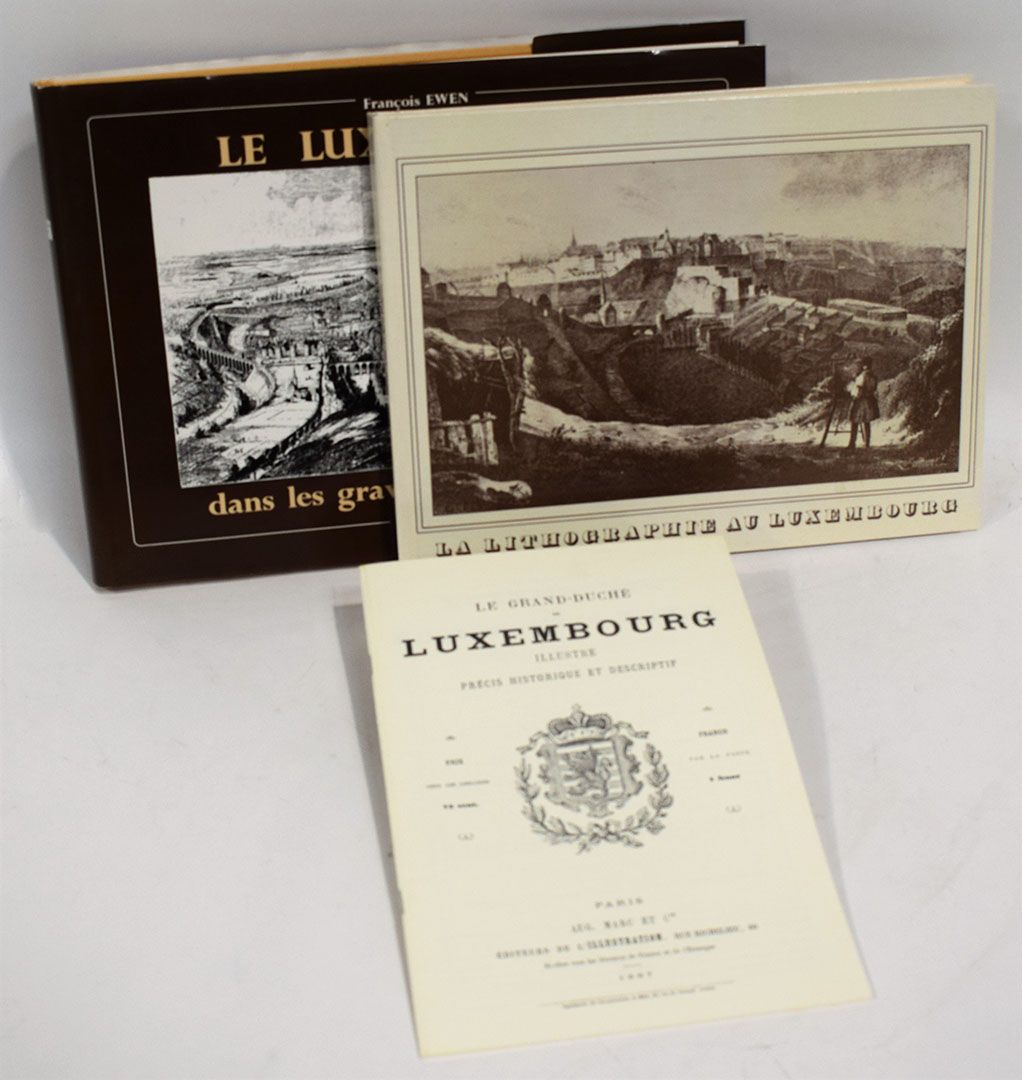 (ART) Gravures et Lithographies du GDL : 1. Charles TOUSCH & Marcel NOPPENEY : La lithographie au Luxembourg, 1983, édition numérotée #28 comprenant 4 vues supplémentaires tirées de l'abum de KRAUSE, 2. François EWEN : Le Luxembourg dans les gravures du 19e siècle, 1988, 3. fac-similé "le Grand-Duché de Luxembourg illustré, Précis historique et descriptif", 1867, éditeurs de l'Illustration