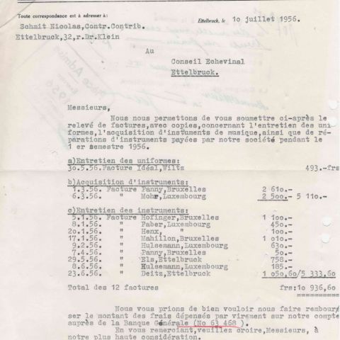 Facture de la Maison FEIPEL-STAAR, Propriétaires-Vignerons à Remich, pour une commande de 2.000 bouteilles de Riesling, en-tête avec la façade de la société, 1950, 28 x 21 cm
