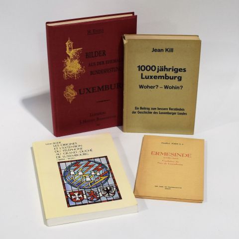 (Arthur HARY : ERZLAND, Luxemburger Heimatbuch. Die Geschichte und die Geschicke des Landes der Roten Erde, Verlag von Gustave Soupert, Luxemburg, 1917, 184 pages, couverture déchirée, 23 x 14 cm