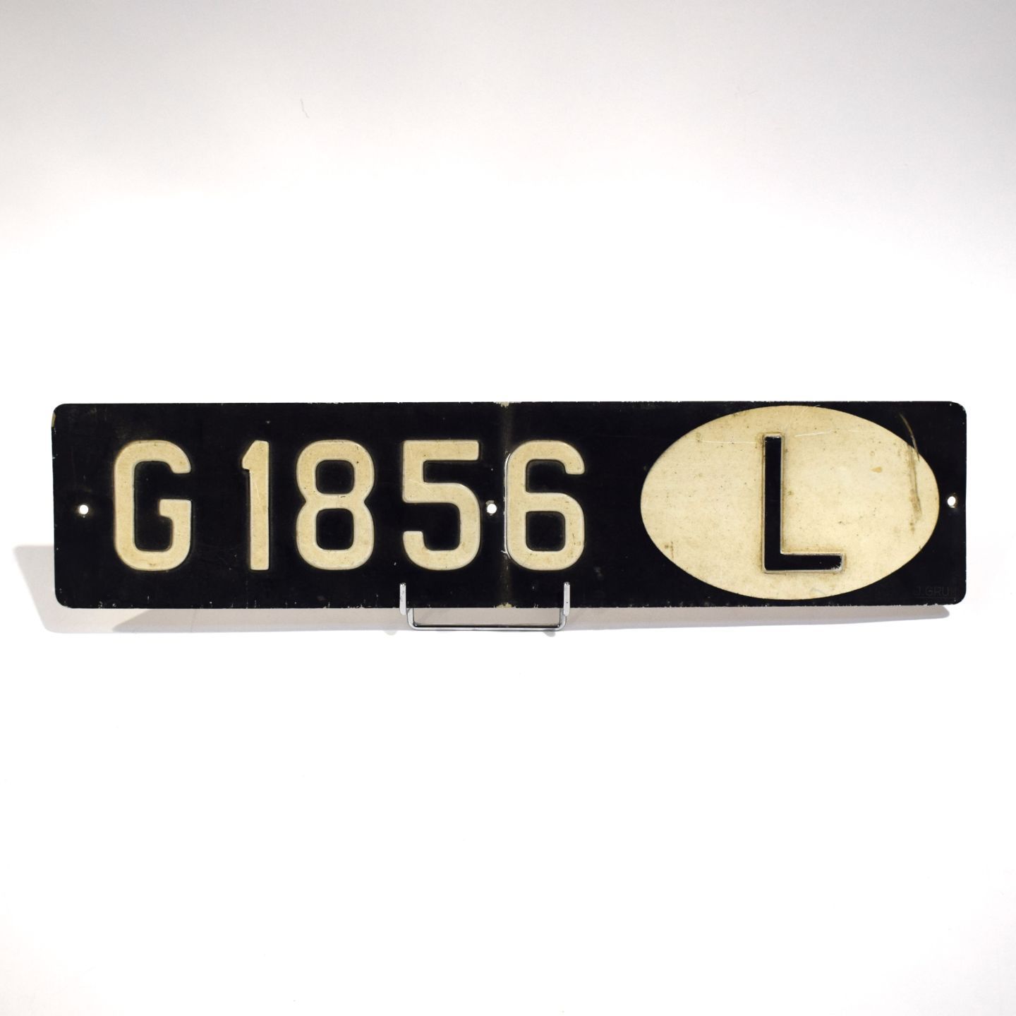 Plaque d'immatriculation luxembourgeoise avec logo "L", signée J. GRUN, 12 x 53 cm