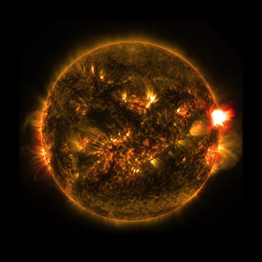 Nasa. GRAND FORMAT. Exceptionnelle capture d'une éruption solaire située sur la partie inférieure du soleil réalisée le 27 octobre 2014.