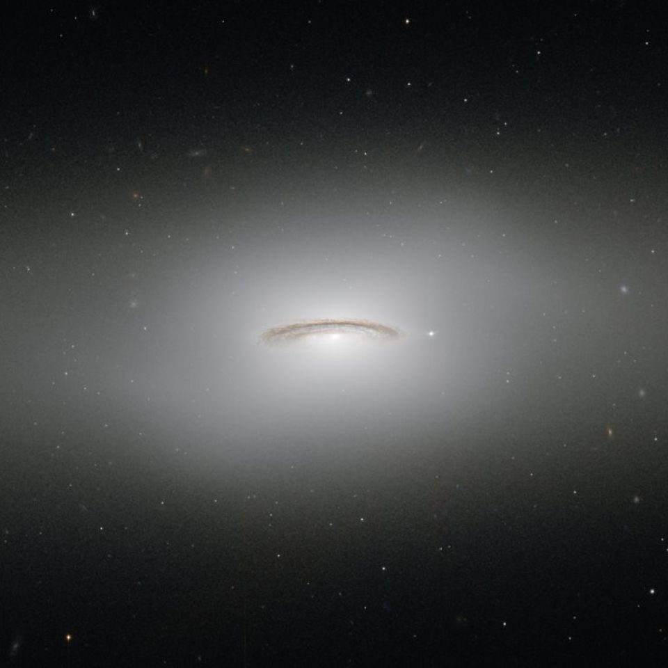 Nasa. GRAND FORMAT. Cette galaxie saisie par le télescope HUBBLE semble être le sujet d'une magnifique peinture photographique. Ses couloirs sombres de poussière et sa lueur brillante et diffuse donnent à la galaxie l'apparence d'un halo dans le vide de l'espace. Si cette galaxie brosse un tableau de sérénité, la galaxie est en réalité tout le contraire. C'est l'une des galaxies lenticulaires les plus brillantes connues, une catégorie qui se situe quelque part entre les spirales et les elliptiques. Elle a accueilli deux explosions connues de supernova, l'une en 1969 et l'autre en 1994, et est connue pour avoir un trou noir colossal supermassif en son centre qui a la masse de 450 millions de Soleil. 2014.