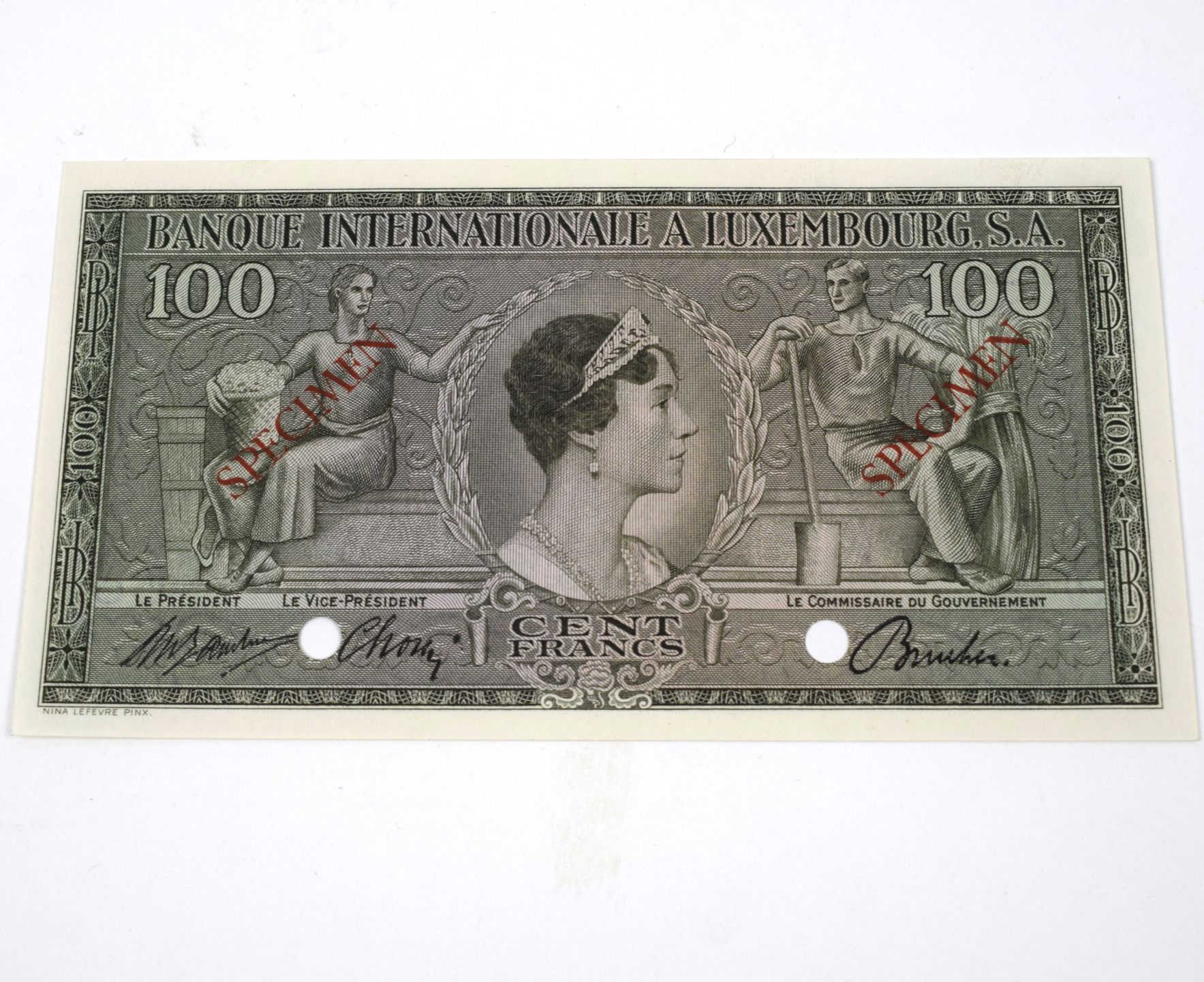 SPECIMEN. Billet de 100 Francs, littera L, Banque Internationale a Luxembourg