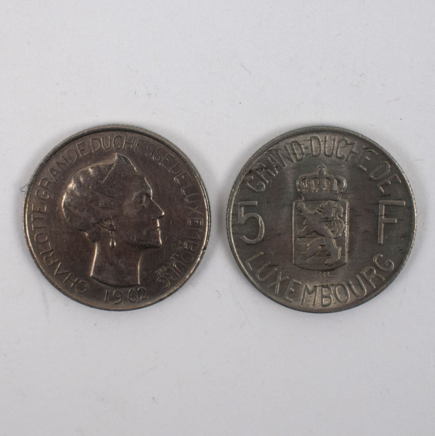 Réunion de deux pièces de 5 Francs, profil de la Grande-Duchesse Charlotte, 1962