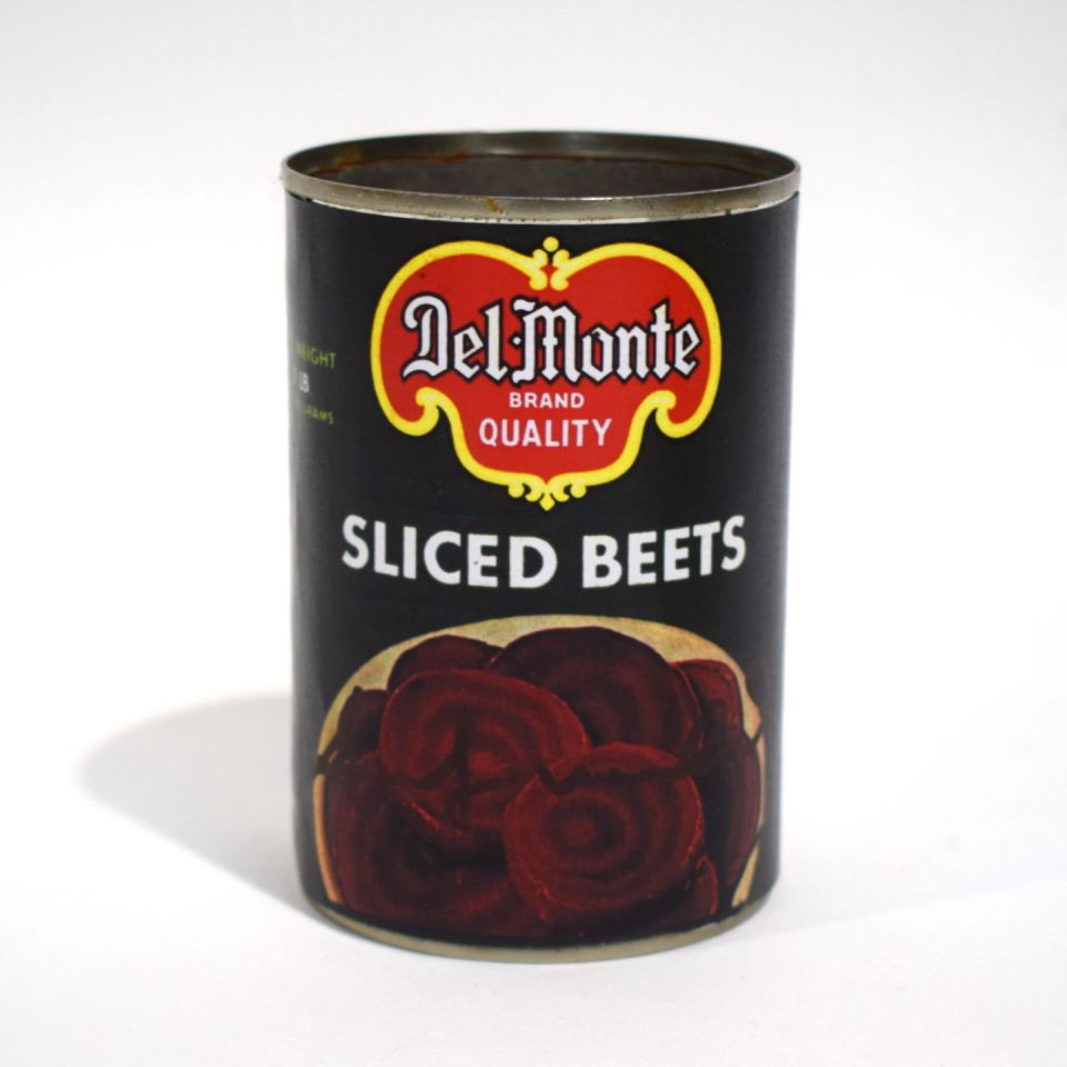 A. Warhol (d'après), Del Monte Sliced Beets, Boîte de conserve métallique, porte une signature au feutre sur l'étiquette et deux tampons dessous et à l’intérieur, 11 x 7,5 cm, sans certificat