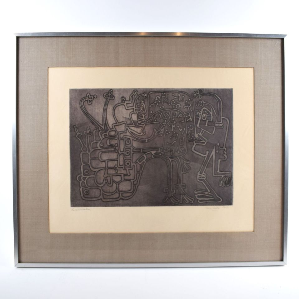 Lithographie signée "La conversation" de Pierre Caille, numérotée et bien encadrée
