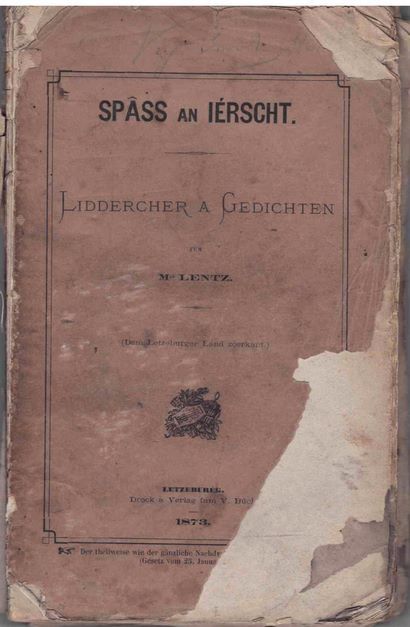 (Histoire) Michel Lentz : Spâss an Iérscht, Liddercher a Gedichten, 1873.