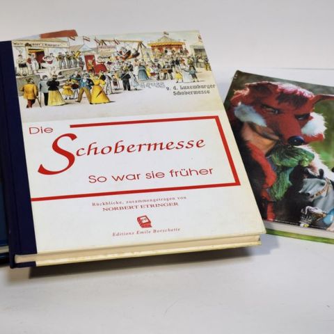 (Folklore) J.P. Erpelding : Luxemburg Tausend Jahre, Kulturgeschichtliche Entwicklung der Stadt von 963-1963, 1963. 2. Paul Eubel : Luxemburger Tierprozession, 1999. 3. Norbert Entringer : Die Schobermesse, So war sie früher, 1992 (truffé de 2 documents de la même année). 4. Compagnie Fiduciaire : Constructions et sites industriels au XXe siècle au Grand-Duché de Luxembourg, 2000 (truffé d'un document de la même année).