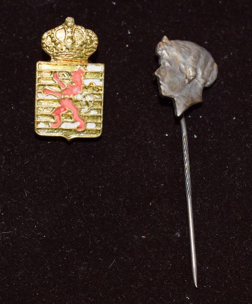 Epinglette de la Libération au profile de la Grande-Duchesse Charlotte + Epinglette en métal doré au Roude Leif
