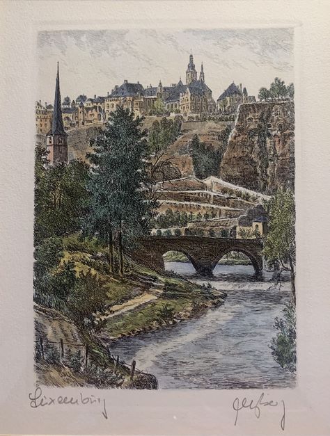 Fernand BERG (né en 1949), Stierchen. Gravure en couleurs, 17 x 22 cm (à vue).