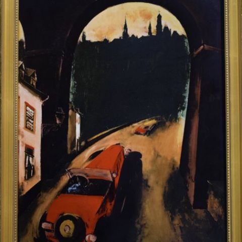 Joseph KUTTER (1894-1941), Voiture de Course. Reproduction sur porcelaine. Edition limitée à 1000 pièces (N°452). 38 x 30 cm.