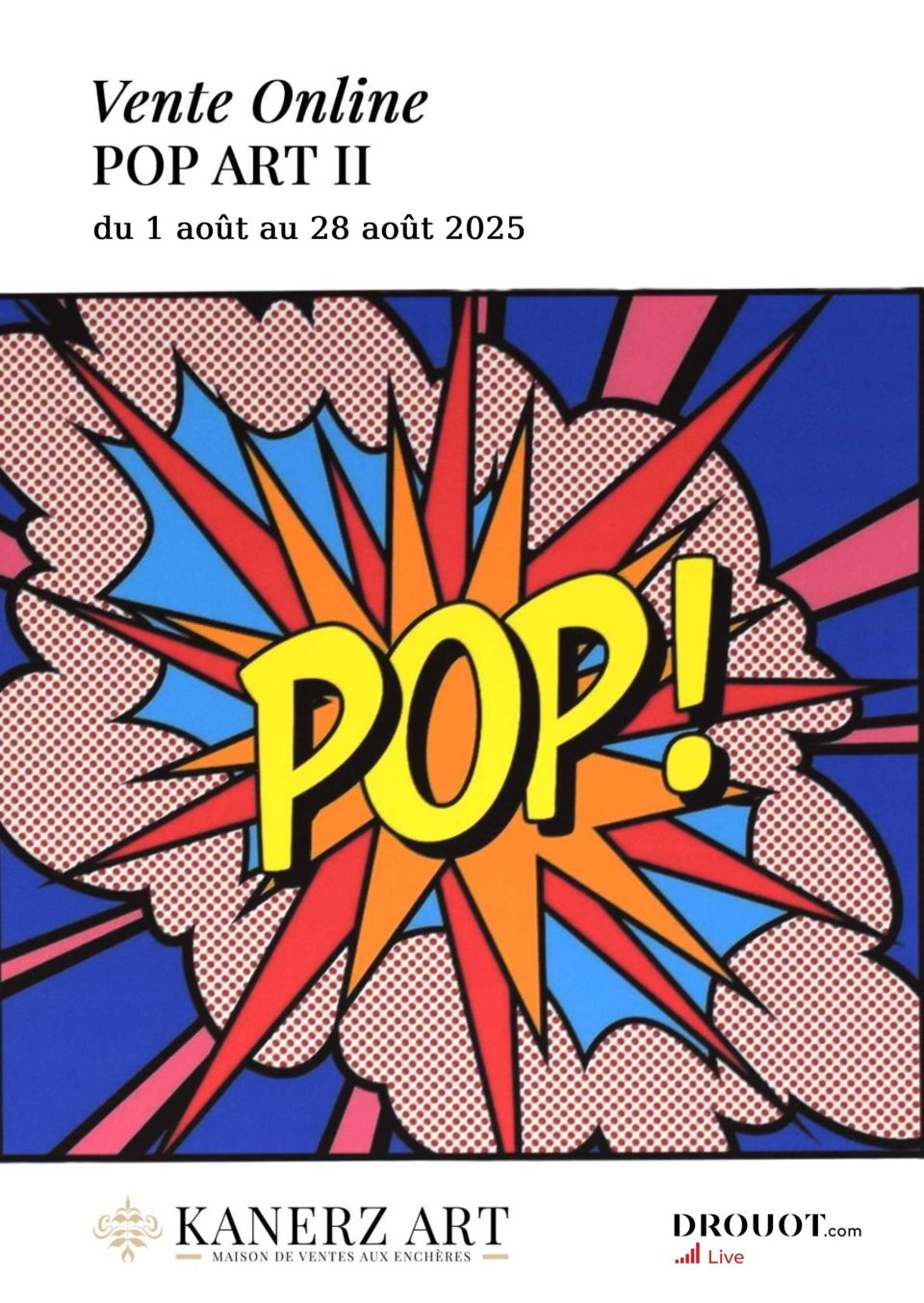 Découvrez une vente aux enchères explosive à la croisée du Pop Art et du Street Art. Plongez dans l'univers électrisant de l'art urbain contemporain à travers une sélection pointue d'œuvres qui défient les conventions. Le vente se tiendra du 1 août au 28 août 2025 avec une clôture à 14h00.